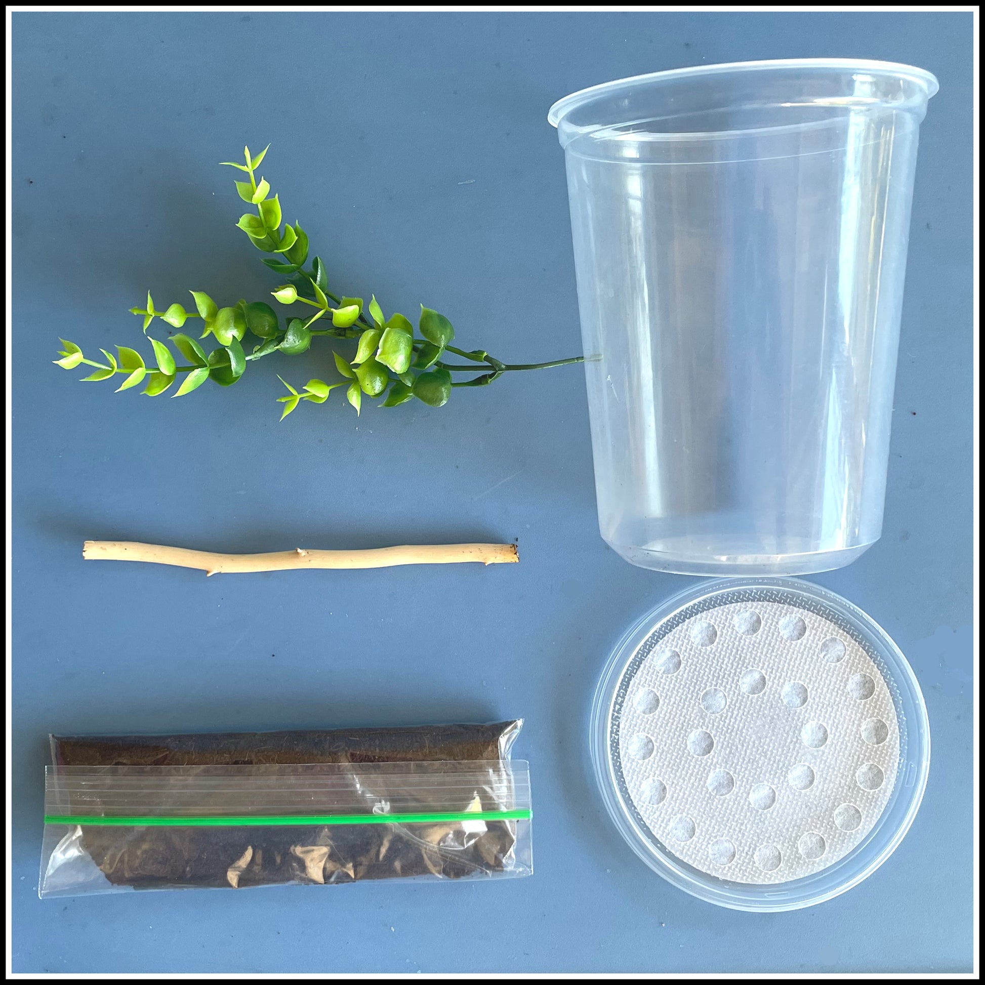 This terrarium like habitat for small animals and insects makes an economical and attractive home for many different kinds of creatures, including praying mantis nymphs and young juveniles. Your pet will find it rather comfortable with places to perch, explore and hide if they feel it necessary. You may want several for your zoo in the making.