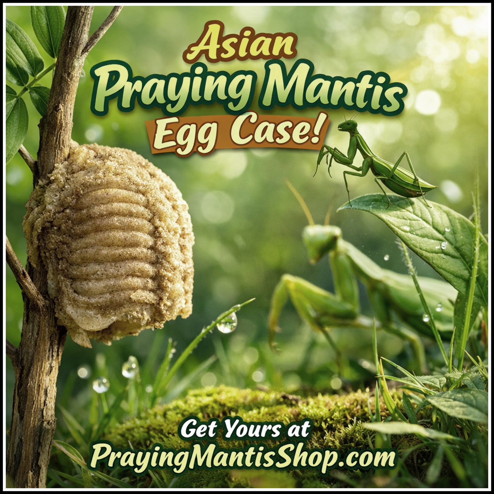 This mantis lives in a large part of the country and is widely used for garden pest control. Each case (ootheca) hatches over 100 specimens each, sometimes as many as 300! Mantises will hatch after 3-8 weeks of warm weather. We recommend either hanging the egg case in a shady area of your garden among the plant foliage OR keeping the egg case in one of our praying mantis enclosures and raising them as pets. Please see our FAQ PAGE for lots of information.
