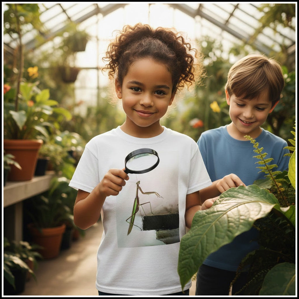 Let your little one explore a world of pure imagination in our soft, comfortable kids tee. It's the perfect blank canvas for adventures, creativity, and endless fun! Children are fascinated by praying mantises. Indulge their fascination by getting them one of our mantis T-Shirts. A beautiful design and high quality material will have your young one dressed to impress!