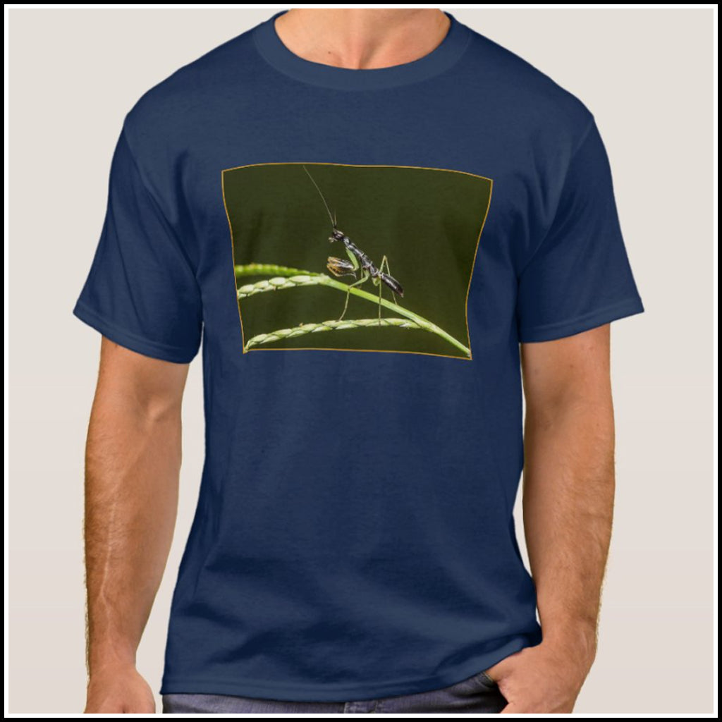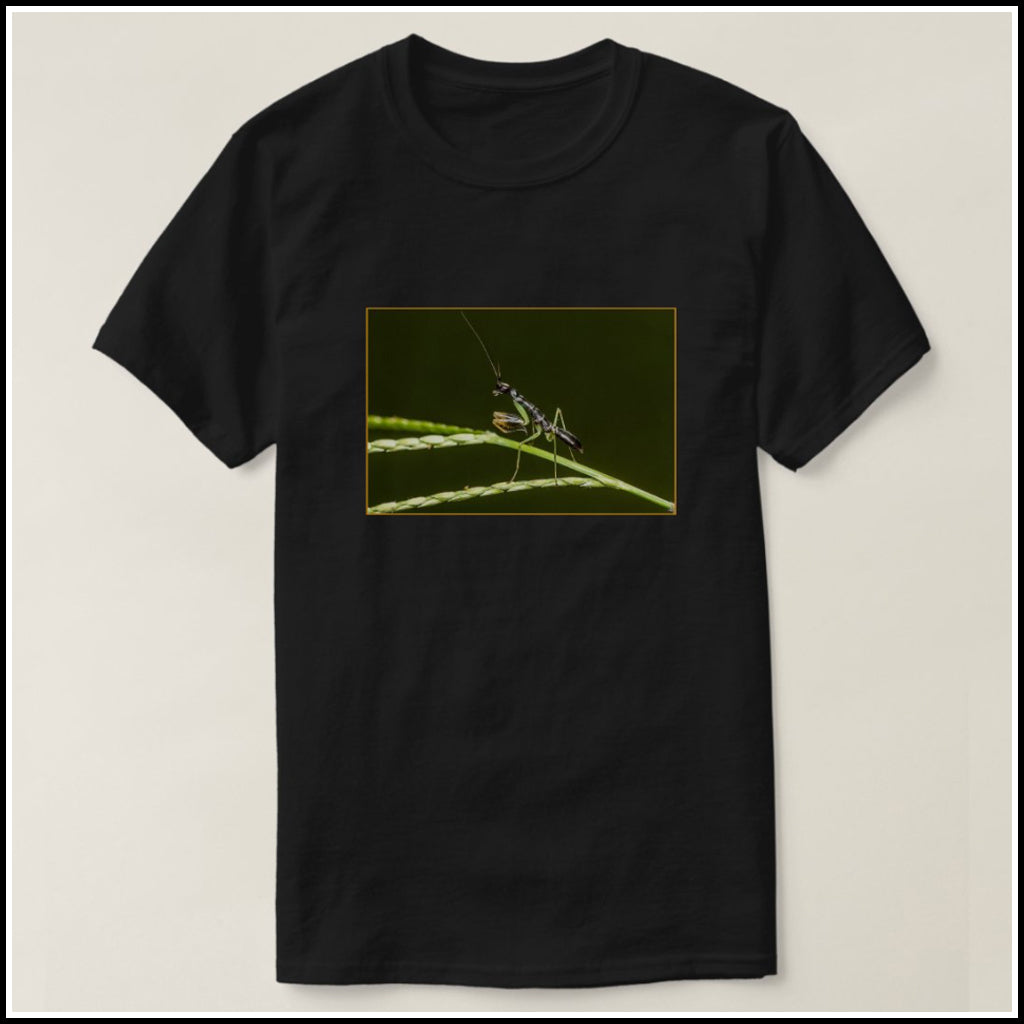 Rock a bold statement with our Exotic Mantis tee. This beautiful species sports black and green coloration. This insect is one of nature's most fascinating predators. You'll love the vibrant style. of the graphic. Our men's praying mantis t-shirts will make a chic addition to your wardrobe. Everyone loves a beautiful mantis and a high quality, comfy tee. Why not put the two together?